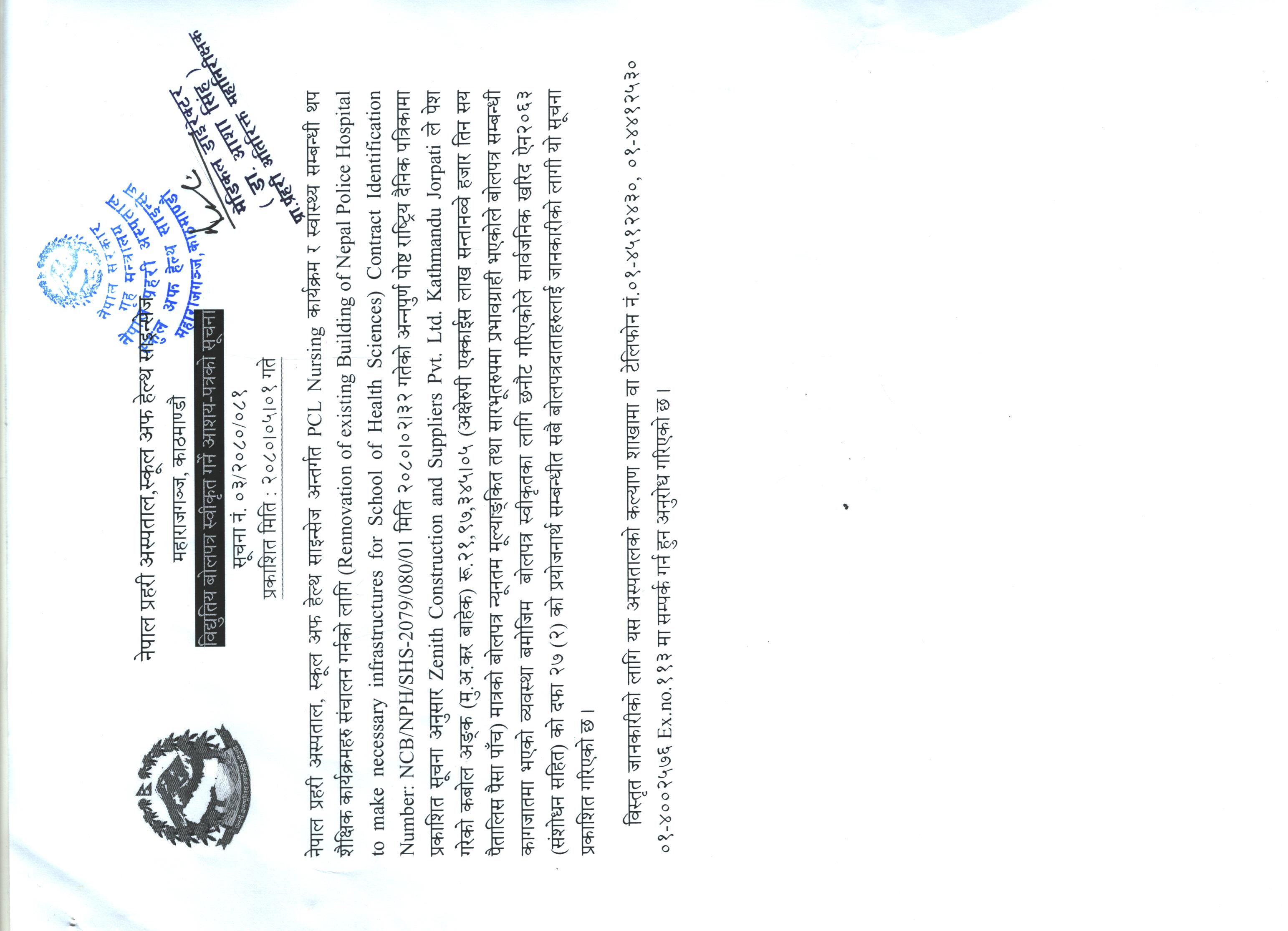 बिधुतिय बोलपत्र स्चीकृत गर्ने आशय-पत्रको सूचना । २०८०/०५/०१ गते ।