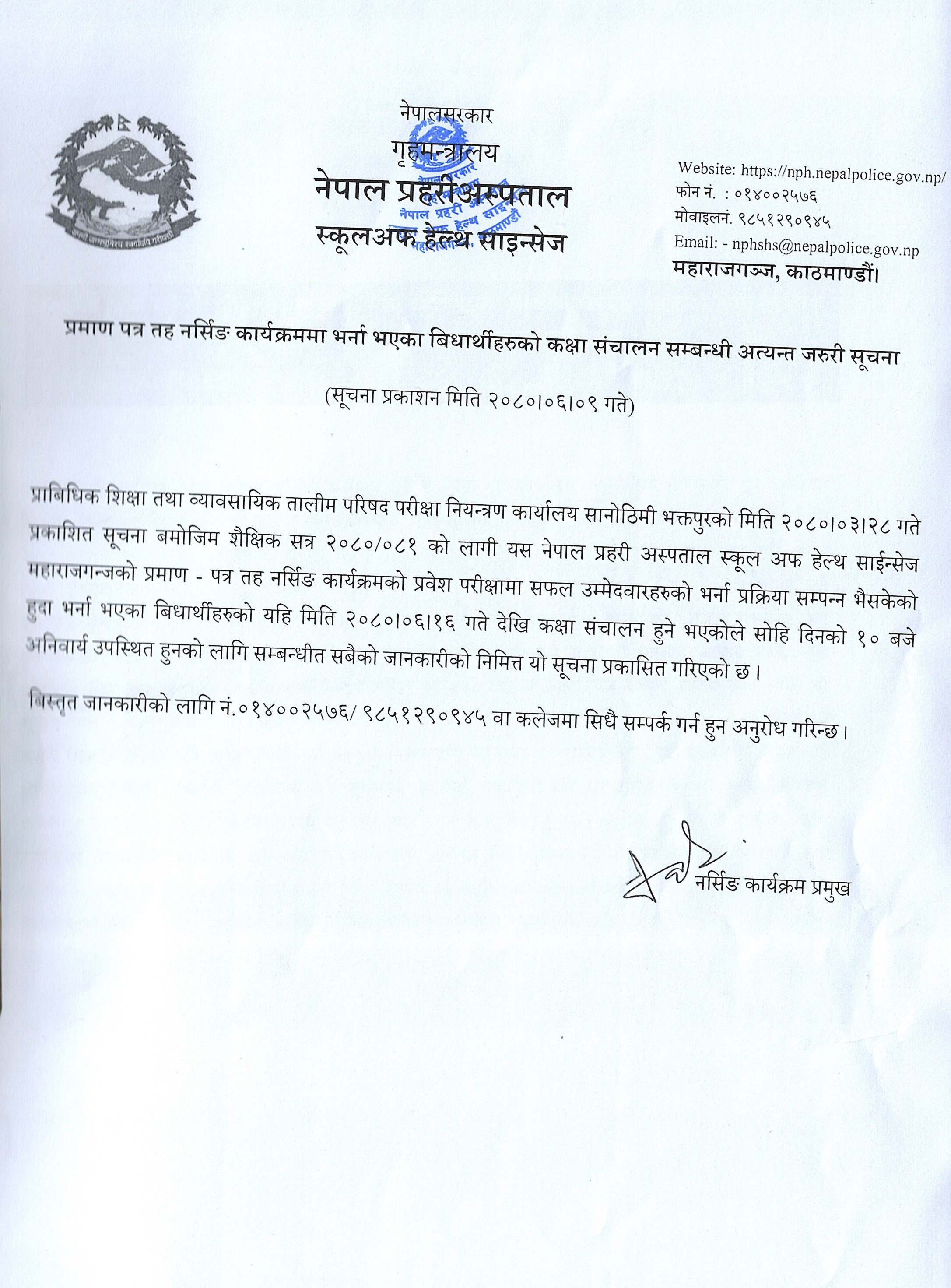 Nepal Police Hospital School of Health Sciences PCL Nursing 2nd Batch 1st year Regular Class Started 2080-06-09 A A- A+ Share