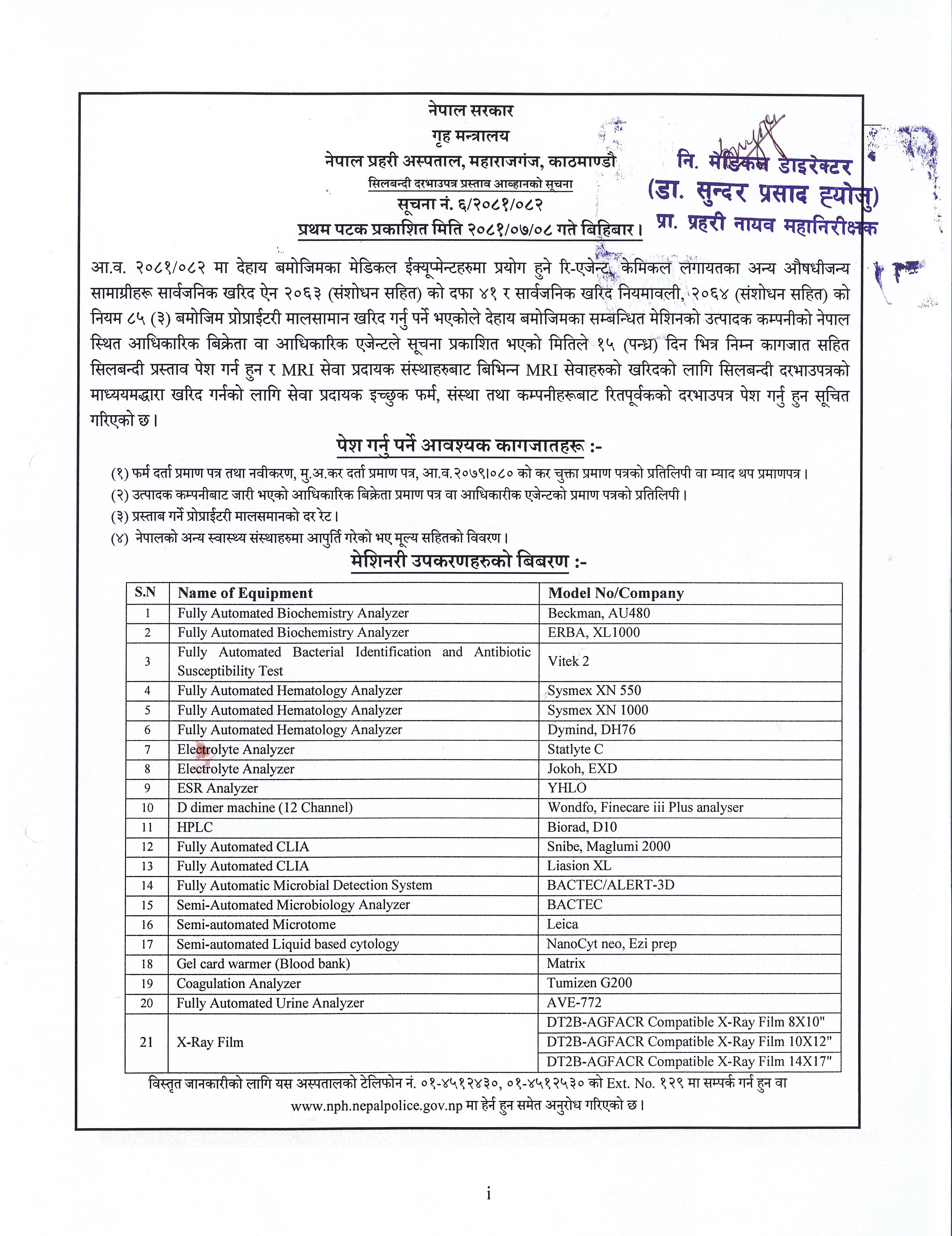 सिलबन्दी दरभाउपत्र प्रस्ताव आव्हानको सुचना । मिति २०८१/०७/०८ गते ।