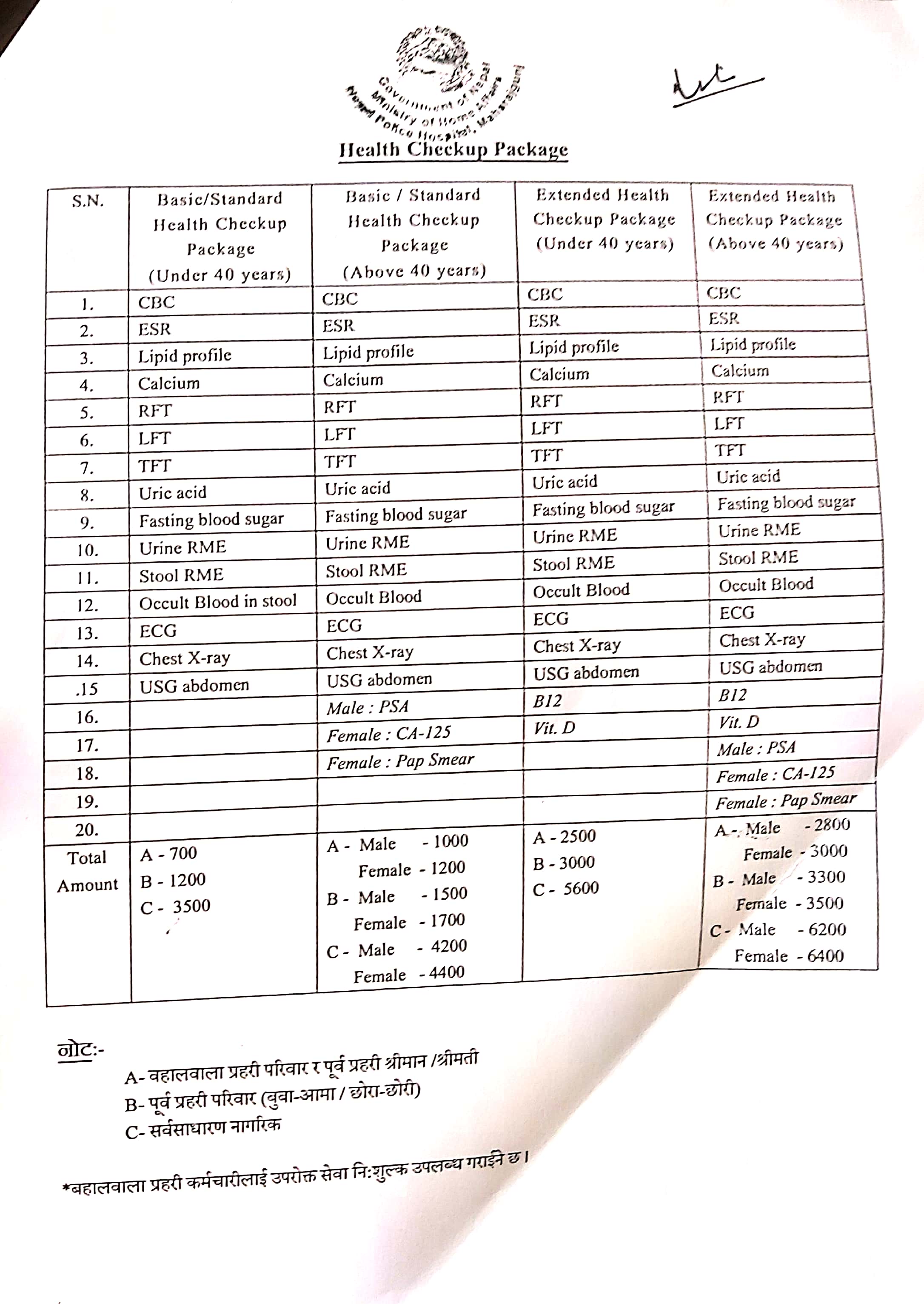 Health Checkup Package